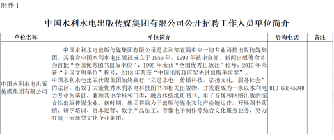 根據工作需要,2024年中國水利水電出版傳媒集團有限公司公開招聘工作人員3名。現將有關事項公告如下: 一、招聘對象 報考人員為2024年應屆畢業生。凡在入學前簽