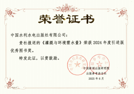 近日,第二十四屆輸出版引進(jìn)版優(yōu)秀圖書(shū)評(píng)選結(jié)果公布,我集團(tuán)《灌溉與環(huán)境需水量》(責(zé)任編輯:宋曉 劉向杰)榮獲2024年度引進(jìn)版優(yōu)秀圖書(shū)獎(jiǎng)。